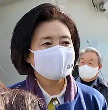 In March 2019, she was appointed the Minister of SMEs and Startups.[8] Poll in December 2020 shows that over 70% of mid-to-low ranking officer at her Ministry surveyed would like to continue to work with Park as she is poised to run for Seoul Mayor bielection in 2021.[9]