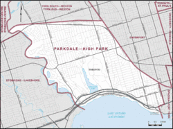 ![]() Parkdale—High Park in relation to the other Toronto ridings (2015 boundaries) | |||