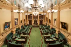 This Act provided for a bicameral Parliament with full authority to enact laws, apart from a few Acts requiring the monarch's personal Royal Assent. The Legislative Council was elected by property owners only, while the 36-member House of Assembly was elected by a full male franchise.[8] The Act also provided for a system of responsible government, where the members of the executive branch must sit in Parliament and, by convention, can only remain in office while they hold the confidence of a majority of the members of the House of Assembly.[9]