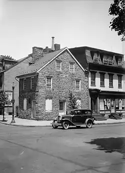 Parsons-Taylor House is a historic home located at Easton, Northampton County, Pennsylvania. It was built between 1753 and 1757, and is a 2 1/2 story, 2 bay stone dwelling in the Georgian style. The interior features a three-part circular stairway that connects the four levels of the home. The house was built for William Parsons and later inhabited by George Taylor (c. 1716-1781), and he died there in 1781. The house has been occupied by the George Taylor Chapter of the Daughters of the American Revolution since 1906.[2]