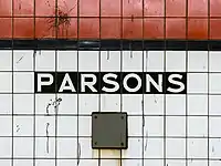 - Cox, Jeremiah (June 2, 2008). "Original, now very dirty, black lettering on a white background 'Parsons' signs are still intact along the columns between the express tracks". subwaynut.com. Retrieved August 26, 2019.