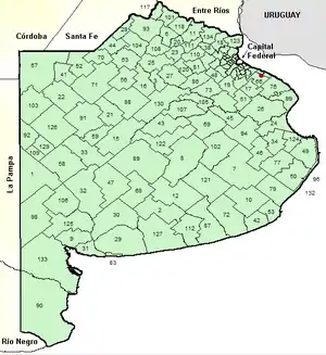 Buenos Aires Province is divided into 135 partidos (administrative centres in brackets).