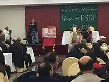 The Pashtoons Social Democratic Party (abbr. PSDP; Pashto: د پښتنو ټولنیز ولسولیز ګوند) is the unity and independence party of all Pashtuns, a Social Democratic political party in Afghanistan and Pakistan, near the Afghan border, and the headquarters of PSDP is in Pashtunistan and its various units (local unit, city unit, district unit, divisional unit) act for party throughout the whole area of Pashtunistan. The party was founded in February 1981 by Kabir Stori, a German-educated Afghan intellectual from Kunar, who was a follower of the non-violent philosophy of Khan Abdul Ghaffar Khan for national unity, independence and the well-being of the entire Pashtun Nation. The party does not recognize the Durand Line and believes in the Greater ("Loy") Afghanistan.