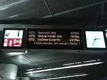 The RIS was started in 2003 and by 2007 it was planned to have 30,000 trains equipped with the necessary train describer (electronic train number).[10] In an accompanying program the older split-flap displays were replaced by electronic dot-matrix signage. While large stations have platform displays with multiple rows, the Deutsche Bahn network operator developed the Dynamic Font Indicator (German: Dynamischer Schriftanzeiger (DSA)) standard system for smaller stations with single row. In 2011 a federal funding was granted to equip 4500 additional stations with DSA signage, making for a majority of 6500 DSAs by 2015.