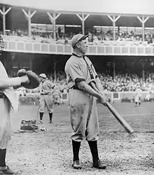 Moran retired as a player after the 1914 season, and was immediately promoted to manager of the Phillies. The club had finished sixth in 1914 and was plagued by defections (and threatened defections) to the outlaw Federal League. Moran swung some astute trades, acquiring key players Dave Bancroft (a Baseball Hall of Famer like Alexander), Bert Niehoff and Milt Stock.[2] Then—led by Alexander's 31 wins and the slugging of right fielder Gavvy Cravath—the Phils improved by 17 games and won their first NL pennant. In the 1915 World Series, they were defeated four games to one by the Boston Red Sox.