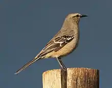 The Patagonian mockingbird (Mimus patagonicus) is a species of bird in the family Mimidae. It is found in Argentina and locally in Chile. Vagrants have been recorded in the Falkland Islands. Its natural habitats are subtropical dry shrubland and heavily degraded former forest.