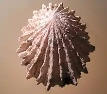 Patella ferruginea, commonly known as the ribbed Mediterranean limpet,[2] is a species of sea snail, a true limpet, a marine gastropod mollusk in the family Patellidae, one of the families of true limpets.[1] It is a large limpet, native to the western Mediterranean Sea, and although common in the past, it is now rare and restricted to only a few locations.