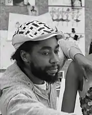 ![]() Patrick Kelly in his Paris workshop, ca. 1985 | |