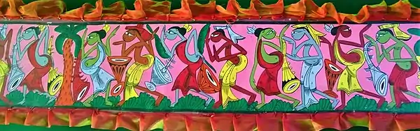 The Bengal Patachitra refers to the painting of West Bengal. It is a traditional and mythological heritage of West Bengal. The Bengal Patachitra is divided into some different aspects like Durga Pat, Chalchitra, Tribal Patachitra, Medinipur Patachitra, and Kalighat Patachitra.[27] The subject matter of Bengal Patachitra is mostly mythological, religious stories, folk lore and social. The Kalighat Patachitra, the last tradition of Bengal Patachitra is developed by Jamini Roy. The artist of the Bengal Patachitra is called Patua.[28]