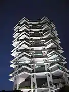 Another school building in Sarasota designed by Rudolph was the 1960 addition to Sarasota High School, a concrete structure that utilized large overhanging sunshades and "internal" yet outside corridors with natural ventilation. This building, along with a gymnasium structure built at the same time, has recently undergone a renovation by the Sarasota County School Board that reinstated the building's original exterior appearance, but contains a completely new interior layout.[6]