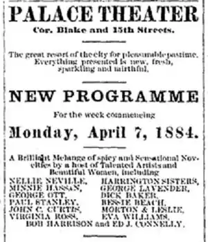 Stanley's vaudeville career included a stint with Wright's Comedians in a two-man act with Jay Brennan;[3] an act billed as "Paul Stanley and his Mother-in-Law" at the Milwaukee Theatre;[4] solo performances called "character changes" with the London Theatre Specialty Company at Boston's Lyceum Theatre;[5] and performances billed as "Paul Stanley, the international comedian" at the Atlantic Garden in Brooklyn, New York.[6] Stanley's claims to be the writer of the music for Henry F. Sayer's production of Tuxedo is discussed and rejected in several sources that conclude that he was not the writer.[7]