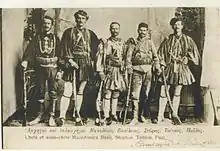 Born in Rakovo, near Florina, Manastir Vilayet, Ottoman Empire (modern-day Kratero, Florina, Greece) in 1877. He was a Greek Macedonian.[1] In 1900, he moved to the United States on seasonal work. While away, his village was burnt down by the Ottomans in 1903,[2] upon which he began training in guerrilla tactics. He joined the Hellenic Macedonian Committee which supported the Patriarchate of Constantinople and the Greek cause in 1905, and entered the detachment of Efthymios Kaoudis. His village had in the meantime suffered threats and assassinations by the IMRO which targeted Patriarchist villages in order to force them to support the Bulgarian Exarchate.[3]