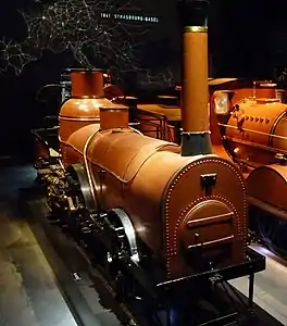 The preserved locomotive was exhibited at the 1913 World Fair in Ghent and then in England in 1925 to mark the centenary of the railways held in Darlington. It was then placed on display (starting in 1958) at the railway museum located in the Brussels-North station complex until March 22, 2014, when it was transferred to the site of the current Belgian railway museum, Train World. This required a wall to be broken at the Brussels-North station to be able to remove the locomotive. It is now displayed in Hall 1 at Train World, a witness to the beginnings of the railroads in Europe. [4]
