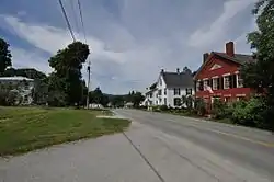 The historic district is centered at the junction of Bayley-Hazen Road with Church Street and Old Cemetery Road, extending a modest distance to the north, east, and south. It extends further to the west on Church Street and Macks Mountain Road, where the academy, church, and some other civic buildings and residences stand. Also found in this area is the town common, at the triangular junction of Academy Hill Road, Church Street, and Macks Mountain Road, where the town's war memorial is located. Most of the village's buildings are modestly scaled 1-1/2 to 2-1/2 story wood frame structures, built either in the Federal or Greek Revival style.[2]