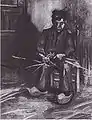 Van Gogh began drawing people from the working poor, including the prostitute Clasina Maria "Sien" Hoornik (1850–1904), with whom he would become involved. Van Gogh dreamed his studio would one day become a form of respite for the poor where they could receive food, shelter and money for posing.[6][7] His work was not well received; Mauve and H.G. Tersteeg, manager of Goupil & Cie, considered the drawings coarse and lacking charm. Van Gogh likened the "unrefined" characteristics of his drawings to harsh "yellow soap" made of lye.[8]