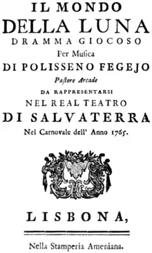 - comic opera Il mondo della luna, with libretto by Carlo Goldoni[6]