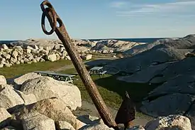 One story suggests the village may have been named after the wife of an early settler. The popular legend claims that the name came from the sole survivor of a shipwreck at Halibut Rock near the cove. Artist and resident William deGarthe said she was a young woman while others claim she was a little girl too young to remember her name and the family who adopted her called her Peggy.[2] The young shipwreck survivor married a resident of the cove in 1800 and became known as "Peggy of the Cove", attracting visitors from around the bay who eventually named the village Peggy's Cove, after her nickname.[3]