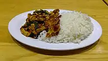 Mongolian-style chicken with scallions and rice