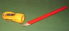 A pencil sharpener (also referred to as pencil pointer or in Ireland as a parer or topper)[1] is a tool for sharpening a pencil's writing point by shaving away its worn surface. Pencil sharpeners may be operated manually or by an electric motor. It is common for many sharpeners to have a casing around them, which can be removed for emptying the pencil shavings debris into a trash bin.