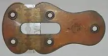 French mathematician Bernard Lassimonne (Limoges) applied the world's first patent (French patent #2444) on a pencil sharpener in 1828.[5] Pencil sharpener devices using his patent were actually produced and sold by Binant, a shop for painting accessories in Paris.[3] In 1833 in England, Cooper & Eckstein patented the so-called Styloxynon, a simple device consisting of two sharp files set together at right angle in a small block of rosewood.[6][7] This is the oldest pencil sharpener that has surviving examples.[8]