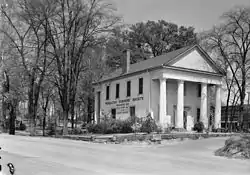 The court house and jail for Pendleton District were in Pendleton, South Carolina. At the time of the dissolution of the district, its second court house was under construction. This was completed by the Pendleton Farmers' Society. It is still standing in on the Pendleton Square and is part of the Pendleton Historic District.[4]