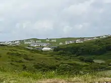 Penhale Camp was established in 1939, to the north of the dunes, as a World War II emergency measure to train anti-aircraft gunners. There still remains evidence of the gun sites, searchlight batteries and defensive positions such as pillboxes and trenches.[9] On 7 June 1940 the camp was bombed by a single German bomber, probably looking for the nearby St Eval airfield; twenty-two British soldiers were killed in the raid, most were subsequently buried in nearby Perranporth.[10] In 1943 the camp was occupied by the United States Army Corps of Engineers[11] as part of the buildup to Operation Overlord, the D-Day landings. The engineers built the fourteen Nissen huts on the Camp; still used today as accommodation for training units. In 1955, three Royal Artillery men drowned while swimming in the sea at Perran Corner. These dangerous waters, with treacherous rip tides, have also claimed the lives of at least two civilians.
