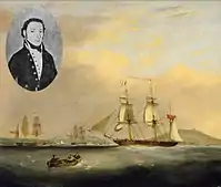 He was a Captain in His Majesty’s Packet Service which was responsible for transporting the mail between Britain and other countries. For many years he was the commander of a boat called Walsingham. A watercolour was painted of this ship which is in the Falmouth Maritime Museum.[6] In 1825 Captain Bullock was transferred to the ship Redpole but in 1828 it was attacked by pirates and he was killed. An account of this incident is given here