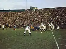 Once considered one of the most important college football rivalries north of the Mason–Dixon line, this intrastate rivalry was deemed the biggest annual game for both schools for a large part of their histories.[4] The game often had regional and national implications with the winner often claiming Eastern college football supremacy and its respective Lambert-Meadowlands Trophy.[5]