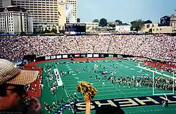 The last game prior to the series hiatus was played at Three Rivers Stadium in Pittsburgh, Pennsylvania, on September 16, 2000, when Pitt shut out Penn State 12–0. The desire of the Penn State Athletic Department to host an unbalanced number of home games (proposing 2–1 and 3–2 series) at Beaver Stadium was a significant factor in not agreeing to renew the series.[7] The basis for this request stemmed from the fact that of the 96 games played by the two teams at the time, only 23 occurred in Happy Valley.