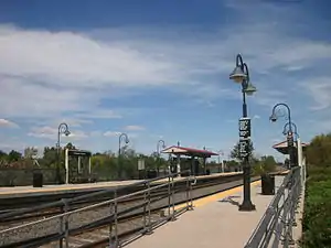 ![]() The Pennsauken - Route 73 station facing north towards Palmyra on the Trenton-bound platform | |||||||||||