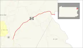 Pennsylvania Route 652 (PA 652) is a 10.559-mile-long (16.993 km) east–west state highway located in the northeast Pennsylvania county of Wayne. The western terminus of the route is at U.S. Route 6 (US 6) in the Texas Township community of Indian Orchard. The highways heads to the northeast, and reaches the eastern terminus at the New York-Pennsylvania border in Damascus Township, where PA 652 crosses the Narrowsburg–Darbytown Bridge over the Delaware River and into New York, continuing as New York State Route 52 (NY 52) and County Route 24 (CR 24) in Sullivan County.