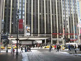 Pennsylvania Station, also known as New York Penn Station or simply Penn Station, is the main intercity railroad station in New York City and the busiest in the Western Hemisphere, serving more than 600,000 passengers per weekday as of 2019.[5][6][lower-alpha 1] It is located in Midtown Manhattan, beneath Madison Square Garden in the block bounded by Seventh and Eighth avenues, and 31st and 33rd streets, with additional exits to nearby streets. It is close to Herald Square, the Empire State Building, Koreatown, and Macy's Herald Square.