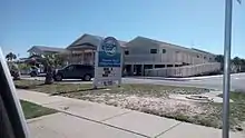 The hub of beach activity, Casino Beach, on Pensacola Beach, is named after the original casino that stood in this location and is a popular beach access.[9] The location is dotted with restaurants and family entertainment areas.[10] It is situated next to the Pensacola Beach Gulf Pier and is equipped with lifeguard stands and station, volleyball courts, snack bar and large parking lot. The Gulfside Pavilion hosts a "Bands on the Beach" concert series during the summer tourist season.[11]