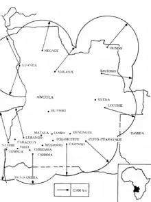 Before 1988 FAPLA's areas of operations were divided into ten military regions.[4] The First Military Region comprised the Zaire and Uíge Provinces, while the Second comprised the Cabinda enclave.[1] The Fifth and Sixth Military Regions faced Namibia in the south. In early 1988, however, calling this structure inadequate, the Ministry of Defence announced the formation of northern, eastern, southern, and central fronts. The northern front encompassed Zaire, Uíge, Malanje, Cuanza Norte, and Bengo provinces. The eastern front covered Lunda Norte, Lunda Sul, and Moxico provinces. No official information on the other fronts was available in late 1988, but presumably the southern front included Cuando Cubango, Huíla, and Namibe provinces, and the central front may have comprised Bié, Huambo, Benguela, and Cuanza Sul provinces. There was no information on the status of Cabinda and Luanda provinces, but perhaps they remained separate regions because of their strategic importance and small size. Because of the uncertain boundaries of these fronts, most news accounts referred to the military regions when describing FAPLA's areas of operation.