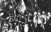 The PAVN was first conceived in September 1944 at the first Revolutionary Party Military Conference as Vietnam Propaganda Liberation Army (Việt Nam Tuyên truyền Giải phóng Quân) to educate, recruit and mobilise the Vietnamese to create a main force to drive the French colonial and Japanese occupiers from Vietnam.[5] Under the guidelines of Hồ Chí Minh, Võ Nguyên Giáp was given the task of establishing the brigades and the Vietnam Propaganda Liberation Army came into existence on 22 December 1944. The first formation was made up of thirty one men and three women, armed with two revolvers, seventeen rifles, one light machine gun, and fourteen breech-loading flintlocks.[6] The United States' OSS agents, led by Archimedes Patti – who was sometimes referred as the first instructor of the PAVN due to his role, had provided ammunitions as well as logistic intelligence and equipments and they had also helped training these soldiers which was later become the vital backbone of the later Vietnamese military to fight the Japanese occupiers as well as the future wars.