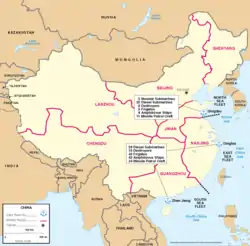 - East Sea Fleet: Danyang, Daishan, Shanghai (Dachang), Ningbo, Luqiao, Feidong and Shitangqiao