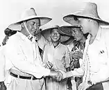 Mao Zedong shaking hands with a people's commune farmer