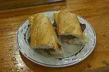 The pepito is a sandwich prepared as a beef, pork, or chicken sandwich,[1] originating from Spain and also very popular in Latin America. It is a common street food in Venezuela[2] and is also available at some U.S. restaurants. The pepito is sometimes referred to as a type of torta sandwich,[3][4] and has been referred to as a "traditional Mexican torta".[5] For the beef version, various cuts of beef are used, and myriad additional ingredients can also be used in its preparation.