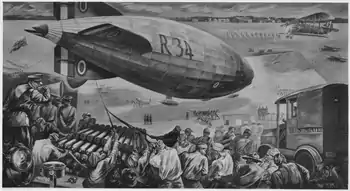 "Arrival of British dirigible R.34 with the first air mail in 1919"; Peppino Mangravite, 1937
