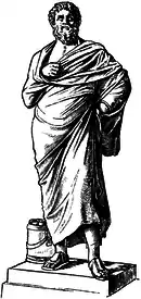Bharata Muni (fl. 5th–2nd century BC) was an ancient Indian writer best known for writing the Natya Shastra of Bharata, a theoretical treatise on Indian performing arts, including theatre, dance, acting, and music, which has been compared to Aristotle's Poetics. Bharata is often known as the father of Indian theatrical arts. His Natya Shastra seems to be the first attempt to develop the technique or rather art, of drama in a systematic manner. The Natya Shastra tells us not only what is to be portrayed in a drama, but how the portrayal is to be done. Drama, as Bharata Muni says, is the imitation of men and their doings (loka-vritti). As men and their doings have to be respected on the stage, so drama in Sanskrit is also known by the term roopaka, which means portrayal.