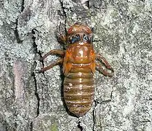 Magicicada is the genus of the 13-year and 17-year periodical cicadas of eastern North America, consisting of seven species. Although they are sometimes called "locusts", this is a misnomer, as cicadas belong to the taxonomic order Hemiptera (true bugs), suborder Auchenorrhyncha, while locusts are grasshoppers belonging to the order Orthoptera.[2] Magicicada belongs to the cicada tribe Lamotialnini, a group of genera with representatives in Australia, Africa, and Asia, as well as the Americas.[3]