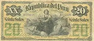 The first banknotes were introduced by the private banks. In 1864, Banco La Providencia introduced notes for 5, 20, 40, 80 and 200 soles, with all but the 5 soles also denominated in pesos (25, 50, 10 and 250 pesos). Later issues of this bank included denominations of ½, 1, 2, 4, 5, 8, 10, 20, 50, 100, 500 and 1000 soles.