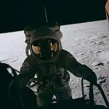 He later revealed that he said this in order to win a bet he had made with the Italian journalist Oriana Fallaci for $500 to prove that NASA did not script astronaut comments (Fallaci was convinced that Armstrong's "One small step for man" speech had been written for him and were not his own words).[18] (In actuality, Conrad's "long one" and Armstrong's "small step" refer to two different actions: going from the ladder down to the landing pad, then stepping horizontally off the pad onto the lunar surface. Conrad's words for stepping onto the Moon were "Oooh, is that soft and queasy.")[17]