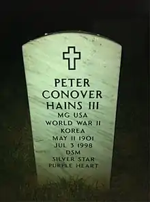 Peter Conover Hains III (May 11, 1901 – July 3, 1998) was an American Army cavalry officer and Major General who competed in the 1928 Olympic games in the modern pentathlon.[1] Hains graduated from West Point in 1924, where he ranked 162nd in his class.[2] Hains' family had a long legacy of military service, with his great grandfather, grandfather, and uncle all serving as high-ranking military officers.[2] Hains' father Peter was involved in an infamous murder scandal in New York City in 1909.[3]