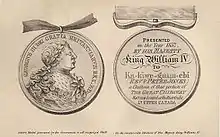 Also in 1829, Jones embarked on a tour of the northern United States with Reverend William Case and several Indian converts to raise money for the Methodist missions in Upper Canada.[19] The tour raised £600, thirty percent of the Methodist Church's annual expenditures across British North America.[45] After his return to Upper Canada, the year's annual Methodist conference named Jones "A Missionary to the Indian Tribes" on Case's urging.[26] The 1830 conference gave him the same appointment. He was also ordained as a deacon then.[46] Upper Canada's Methodists were in desperate need of money by 1831; that spring the church had been unable to pay all the salaries owed.[47] To raise money for the church, Jones travelled with George Ryerson to the United Kingdom that spring where he gave more than sixty sermons and one hundred speeches which raised more than £1000. These sermons were also held with Jones in Indian attire, which combined with his Indian name created curiosity and filled the halls, with four or five thousand attendees at his sermon for the London Missionary Society's anniversary.[48] Jones met with a number of prominent Englishmen, including James Cowles Prichard, who treated him when he fell ill in June 1831, as well as Methodist leaders such as Adam Clarke, Hannah More and Richard Watson.[49] This tour created significant public interest, and Jones met with King William IV on April 5, 1832, shortly before his return to Upper Canada.