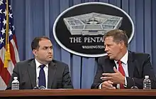 Peter Lavoy, right, with Jarrett Blanc at a 2013 Pentagon press briefing
