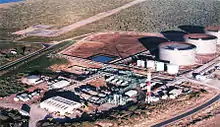 Based largely on development of the reserves of the North West Shelf and other onshore hydrocarbon basins, the industry extracts crude oil, condensate and natural gas from petroleum reservoirs deep beneath the Earth's surface.[1] A large plant located at Withnell Bay near Dampier, produces liquefied natural gas (LNG) for export to Asian customers. Crude oil and most petroleum liquids are exported, and Australia's largest petroleum refinery at Kwinana in WA's south-west, produces petrol and diesel for local consumption.[2] Natural gas is processed at plants located on islands off the WA coast (e.g. The "Gorgon Gas Project" on Barrow Island) and onshore, then transported by pipelines to gas users throughout the state.