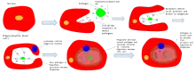 Following apoptosis, the dying cells need to be taken up into the surrounding tissues by macrophages in a process called efferocytosis. One of the features of an apoptotic cell is the presentation of a variety of intracellular molecules on the cell surface, such as calreticulin, phosphatidylserine (from the inner layer of the plasma membrane), annexin A1, oxidised LDL and altered glycans.[12] These molecules are recognised by receptors on the cell surface of the macrophage such as the phosphatidylserine receptor or by soluble (free-floating) receptors such as thrombospondin 1, GAS6, and MFGE8, which themselves then bind to other receptors on the macrophage such as CD36 and alpha-v beta-3 integrin. Defects in apoptotic cell clearance is usually associated with impaired phagocytosis of macrophages. Accumulation of apoptotic cell remnants often causes autoimmune disorders; thus pharmacological potentiation of phagocytosis has a medical potential in treatment of certain forms of autoimmune disorders.[13][14][15][16]