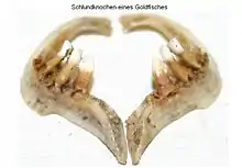 Pharyngeal teeth are teeth in the pharyngeal arch of the throat of cyprinids, suckers, and a number of other fish species otherwise lacking teeth.[1]