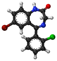 Side effects include hiccups, dizziness, loss of coordination and drowsiness, along with anterograde amnesia which can be quite pronounced at high doses.[9] As with other benzodiazepines, in case of abrupt discontinuation following prolonged use, severe withdrawal symptoms may occur including restlessness, anxiety, insomnia, seizures, convulsions and death, though because of its intermediate half-life[10][11][12] as well as that of its active metabolites, these withdrawal symptoms may take two or more days to manifest.